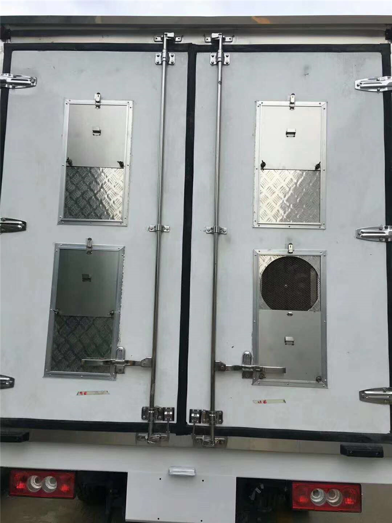 【豬苗車】上裝配置:外玻璃鋼,內(nèi)不銹鋼,兩層液壓升降層板,尾部液壓翻轉(zhuǎn)上豬平臺,層板為不銹鋼骨架鋪鋁花紋板。外部電動升降窗,排氣扇,柴油發(fā)電機(jī),暖風(fēng)加熱,喂水系統(tǒng),凈水箱、污水箱,箱內(nèi)攝像頭監(jiān)控,倒車影像,凱利制冷機(jī)組。(油暖加熱為選裝部件)